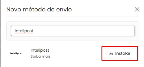 Acesse o painel wBuy e clique em Configurações > Frete e logística. Na nova tela clique no botão Adicionar, filtre por "Intelipost" e clique em Instalar.