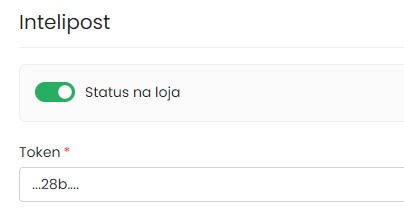Na nova janela você irá alterar o status na loja para ativo e informar um token de segurança que é fornecido à você pelo time da Intelipost.