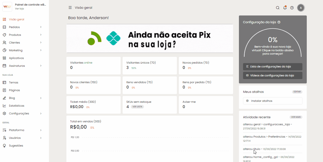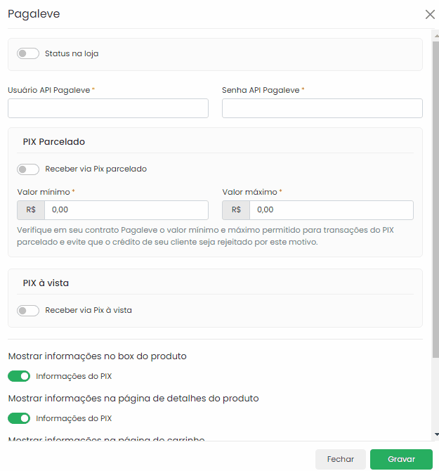 Feitas as configurações, mude o status na loja para ativo e clique em Gravar.