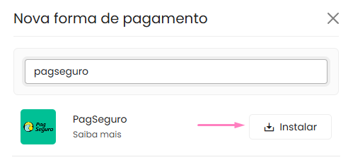 Pesquise por PagSeguro e clique em Instalar.