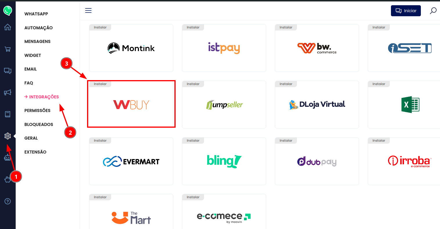 Acesse o painel do SAK, acesse Configuração > Integrações, procure pela wBuy e clique sobre ela.