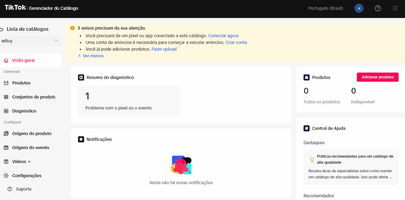 Adicionando produtos no seu catálogo do Tiktok Ads