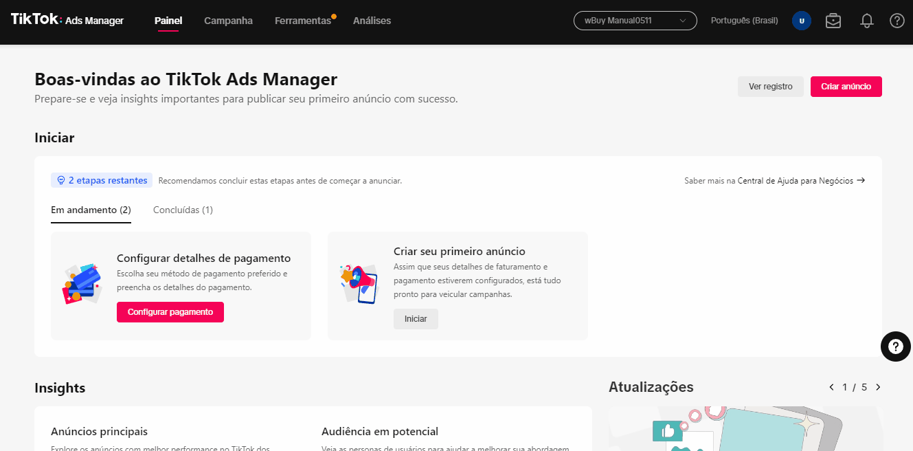 Criando seu pixel do tiktok Ads