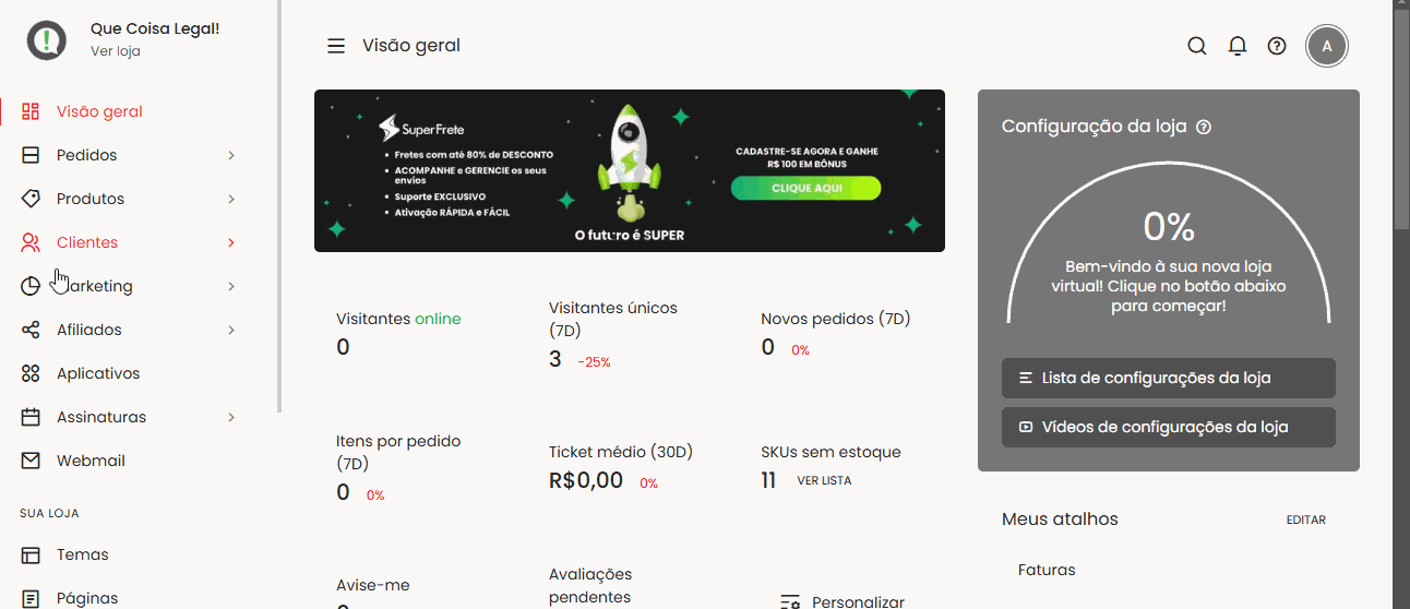 - Acesse o painel wBuy e vá até o menu Configurações > Frete e Logística.