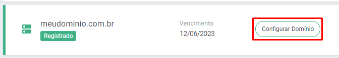Na nova tela localize seu domínio e então clique no botão Configurar Domínio.