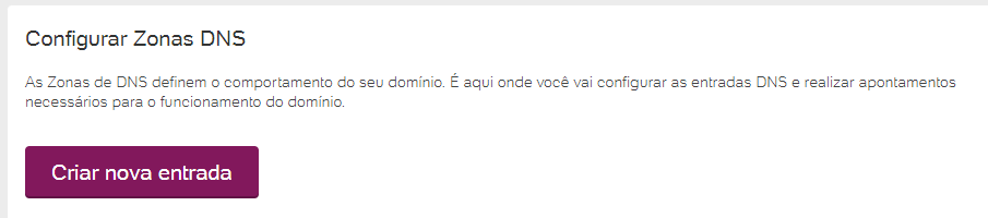 Uma nova janela será aberta com as opções de Configurar Zona de DNS de seu domínio.