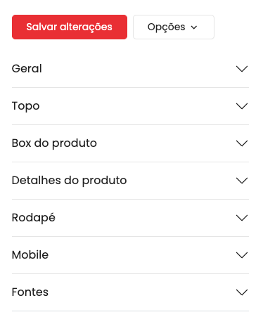Na nova tela você terá à disposição centenas de opções para alterar cores, tamanhos e fontes em diversas páginas de sua loja virtual: