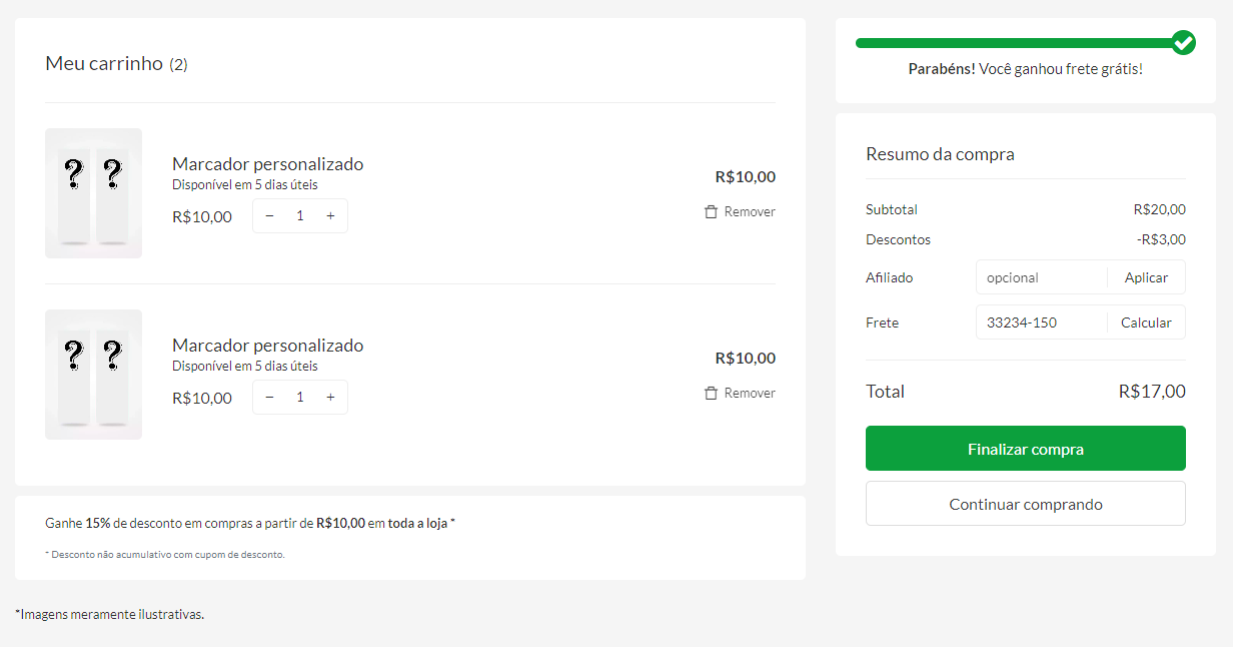 Dessa forma, se o cliente adicionar dois itens do mesmo produto ao carrinho, ao final da compra ele verá dois campos de envio (um para cada item).