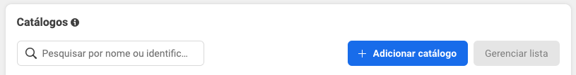 Se já tiver pelo menos um catálogo, você verá uma lista com todos os seus catálogos. Selecione + Adicionar catálogo para criar um.