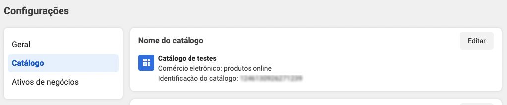 Ainda no Gerenciador de Comércio clique em Configurações, depois em Catálogos.
