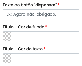 Já no caso de um popup de saída você também precisará definir o texto do botão que fecha a janela e as cores de fundo e do texto.