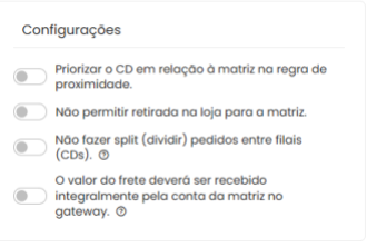Se ativada, na regra de proximidade (explicada na etapa 1), esta opção faz com que o CD (qualquer que seja) tenha **prioridade sobre a Matriz no cálculo do frete.