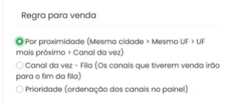 A regra Por proximidade irá priorizar CDs mais próximos do endereço do cliente que tenham em estoque os produtos solicitados, seguindo a ordem abaixo: