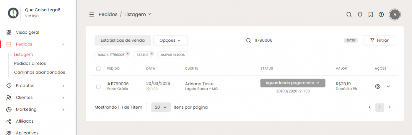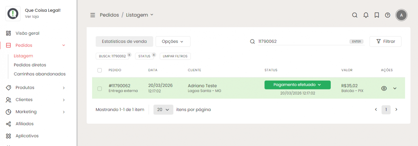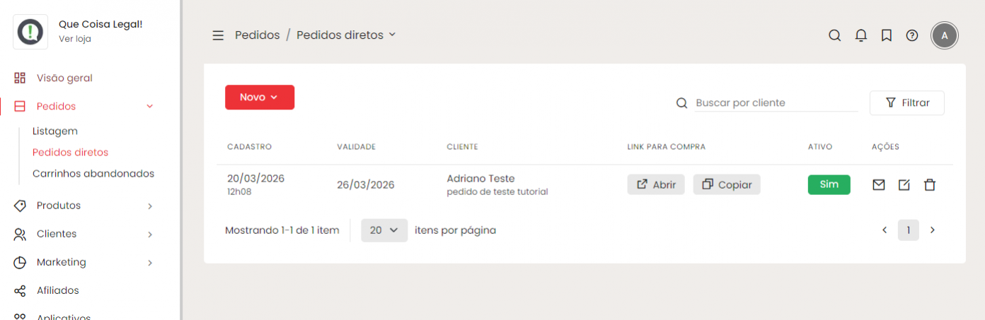 Quando o cliente acessar o link, ele fará uma compra normalmente na sua loja. Após o pagamento, o pedido será criado e aparecerá na sua lista de pedidos.