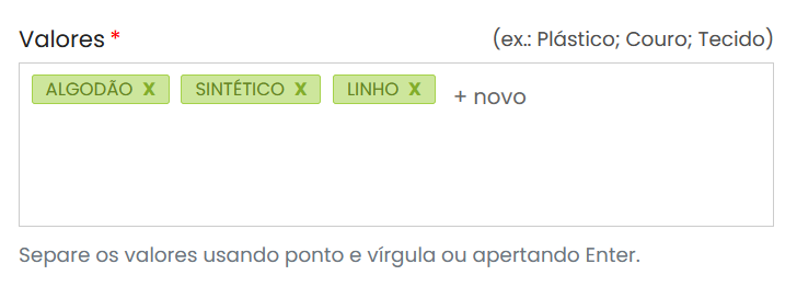 Na sequência, vamos definir os valores, como no exemplo: