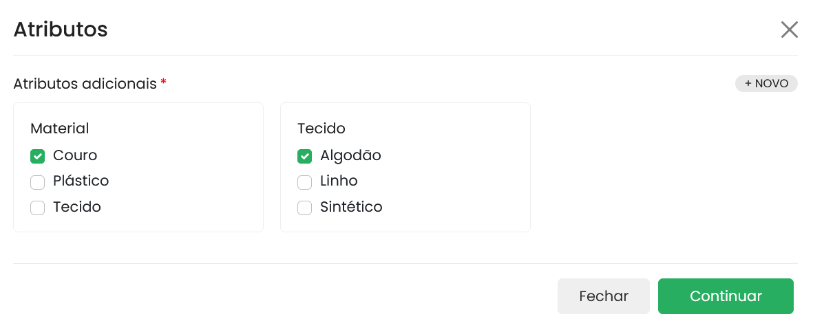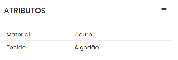 Os atributos representam características específicas que definem a natureza e as qualidades distintivas de um produto, como por exemplo de qual material o produto é feito.