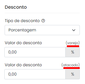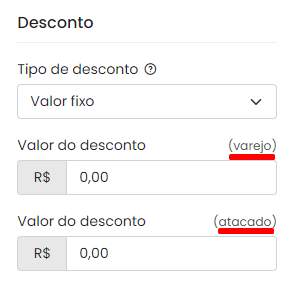 Também é possível definir esses valores de forma separado para as tabelas de atacado e varejo.