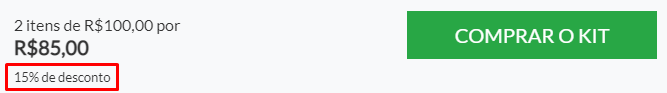 Quando o kit possuir algum desconto, será mostrado para o cliente da seguinte forma: