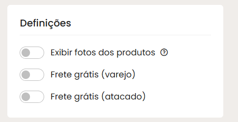 - Exibir fotos dos produtos: caso ativo será mostrado a foto de capa do produto ao lado das informações do mesmo.