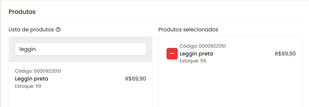 Depois de preencher as informações básicas você deve escolher quais produtos vão compor o kit.