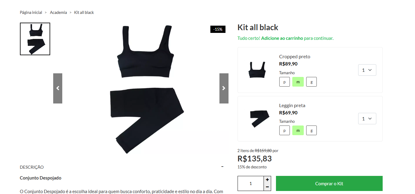 Você pode oferecer descontos fixos ou em porcentagem para o cliente que optar por comprar o kit.