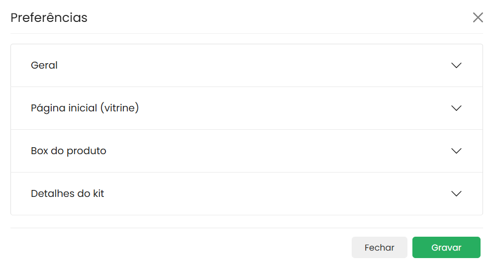 Em Produtos > Upsell e cross-sell > Kits > Opções > Preferências você conta com algumas configurações adicionais que podem ser alteradas de acordo com sua necessidade.