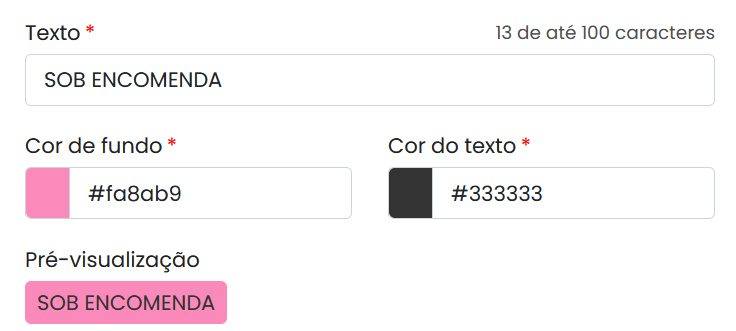 Na sequência, vamos definir o texto e as cores que serão exibidos no selo do tipo texto.