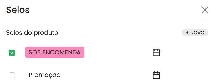 A aplicação de Selos foi desenvolvida para possibilitar a criação de selos informativos personalizados para seus produtos, tais como "lançamento", "frete grátis", "sob encomenda", "promoção" ou outros de sua preferência. Esses selos podem ser criados tanto em formato de texto quanto em imagem.