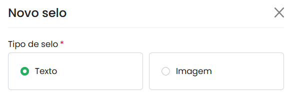 Na nova janela, vamos começar definindo o tipo selo: Texto ou Imagem.